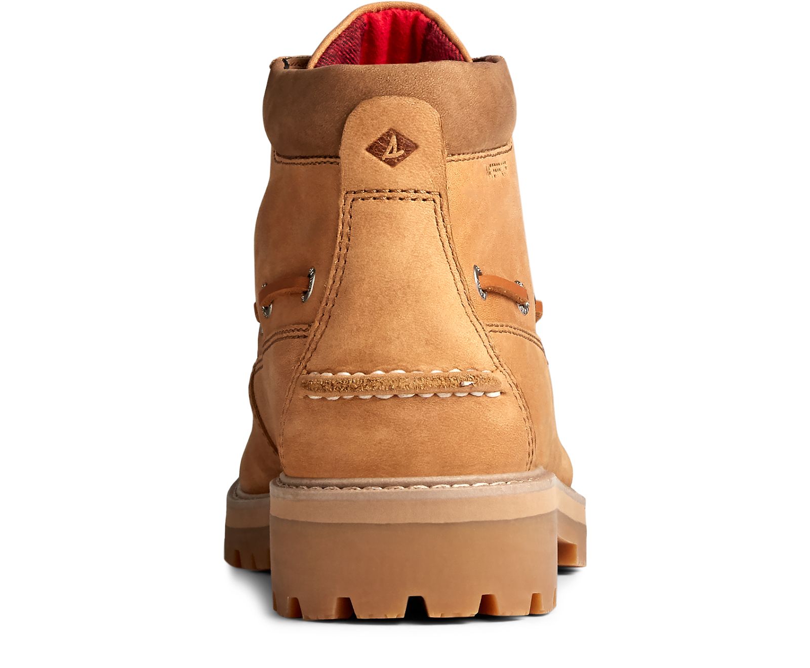 Waterproof leather uppers in a handsewn moccasin construction with a fully impermeableprotective layer for dryness in any conditionEVA cushioning ensures all-day comfort, while a rugged, non-marking rubber lug outsole withmolded Wave-Siping? provides no-slip traction